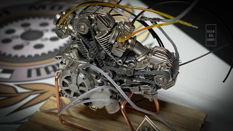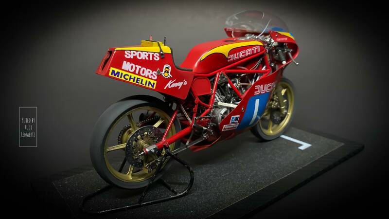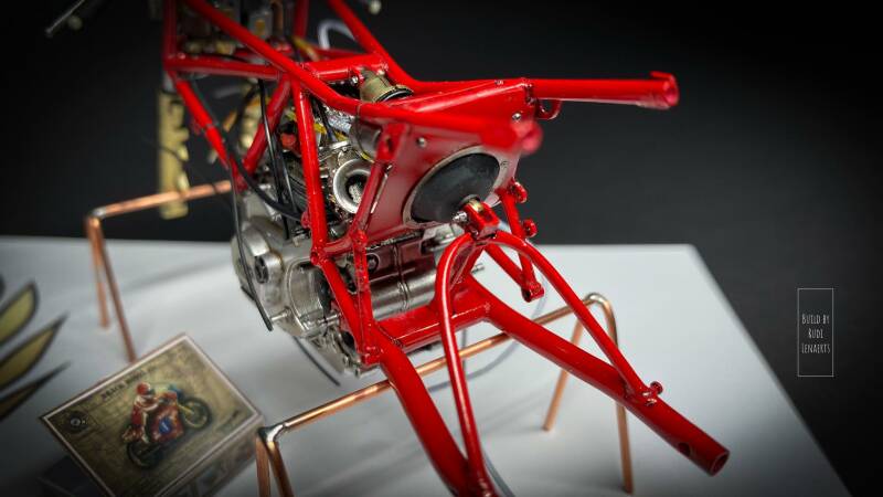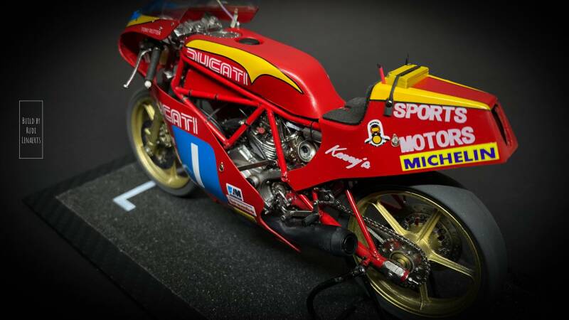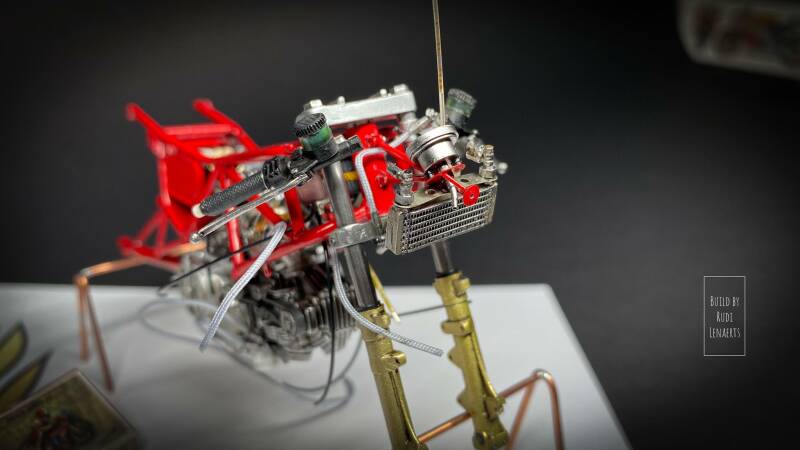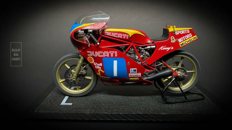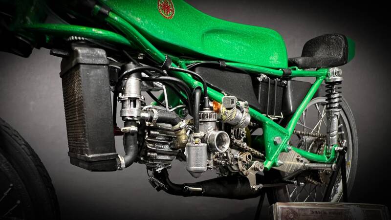 Een zeer gedetailleerd 1:12 schaalmodel van de MORBIDELLI 125 cc van wereldkampioen 1976 Pier Paolo Bianchi.