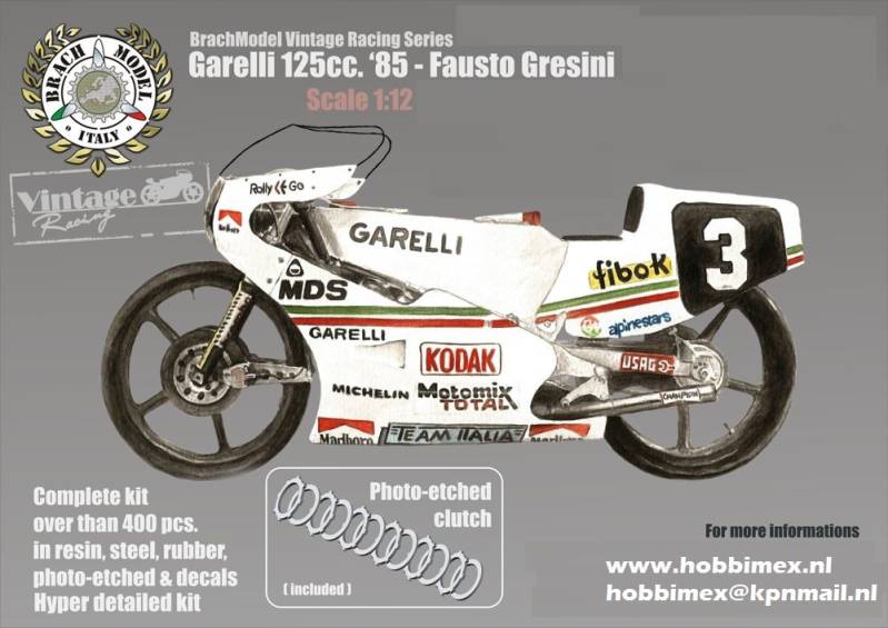 Complete high quality kit in 1:12 scale with more than 400 parts resin , metal parts, complete wiring , rubber tires , photo etched parts and decals.